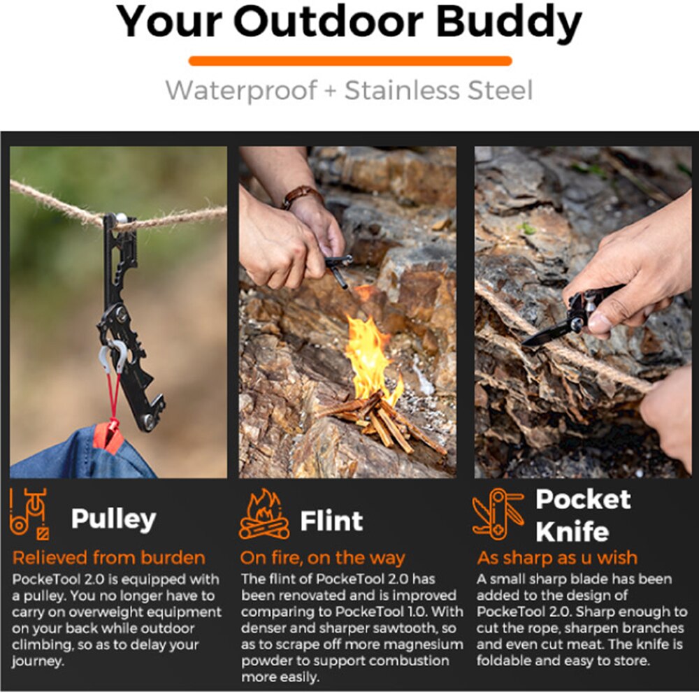 Always be ready for any situation with the 30 in 1 Mini Pocket Survival Tool Foldable Stainless Steel Compact Grade EDC Multi Tools. This all-in-one pocket tool is crafted from 420 grade stainless steel and has a stonewashed finish that gives it unbeatable rust and corrosion resistance. The smooth surface and obtuse-angled edges won’t scratch or gouge, so you can use it confidently without injury. Its compact design will fit easily into your jeans pocket or on a hiking bag via its magnetic backing. This powerful little tool comes with 30 different tools in a single package! From bottle openers, to screwdrivers, folders, saws, nail files and more—you'll never be unprepared on your next outdoor adventure. Get the quality and convenience of the ultimate folding survivors tool today!