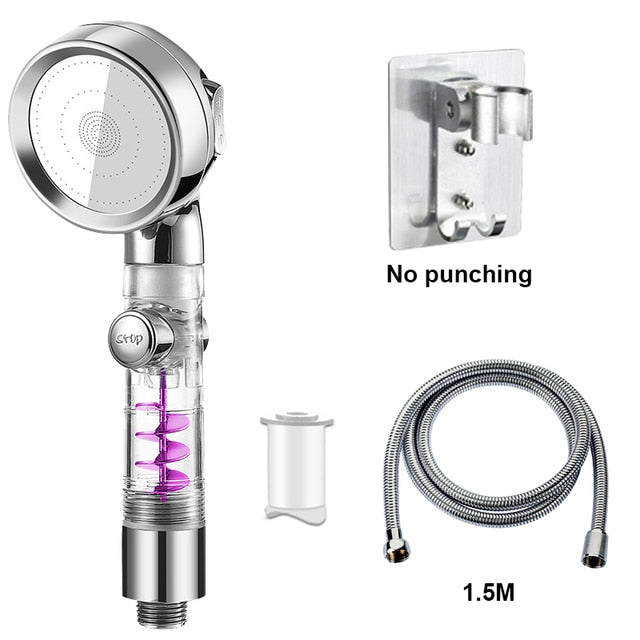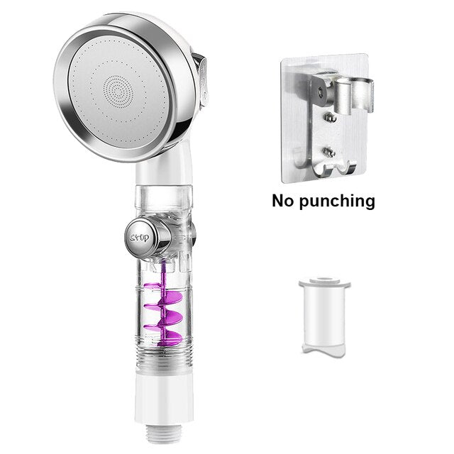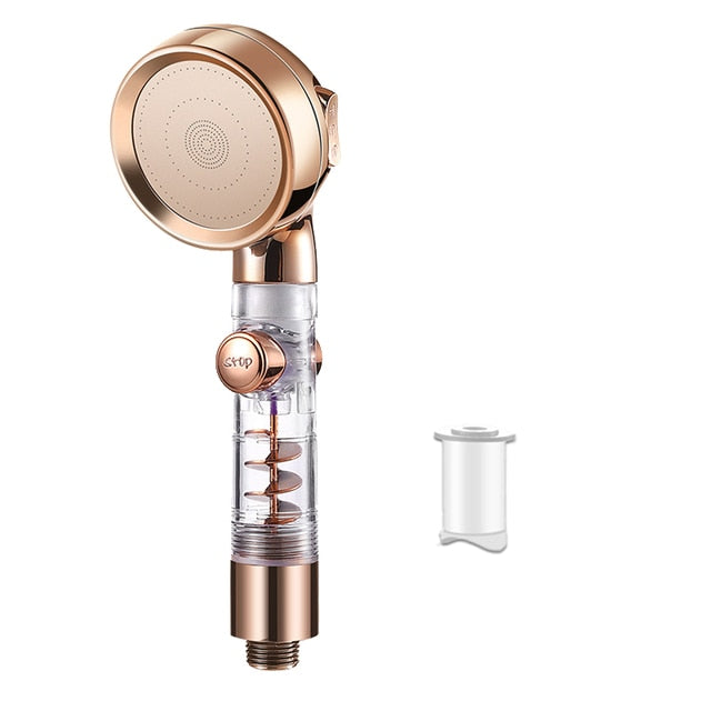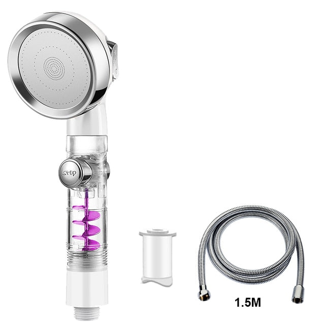 The Handheld Turbo Shower Head is the perfect choice for anyone looking to upgrade their shower experience. This shower head is equipped with a unique and powerful propeller driven design which maximizes water pressure for a truly enjoyable experience. Not only does it increase water pressure, but also saves up to 30% of water usage! Featuring an on/off pause button, this shower head allows you to control the water flow with just a gentle press of a button. Such an intuitive technology prevents unnecessary water waste in the shower. What's more, this shower head also features upgraded filtration technology providing you with clean and pure water while you enjoy your showers. Get the Handheld Turbo Shower Head today and transform your shower into a luxurious spa-like atmosphere!